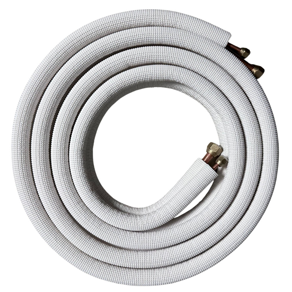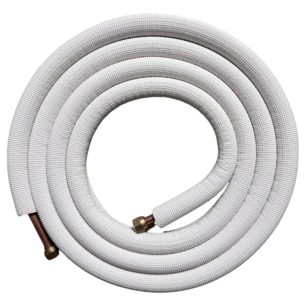 Complete installation kit: Includes 3/8 in and 5/8 in copper tubing, 3/8 in thermal insulation, drain hose, mummy tape and Teflon tape for a secure connection.