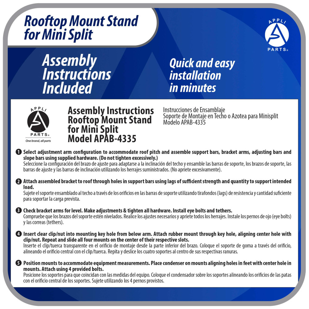 Appli Parts APAB-4335 Rooftop Stand, Heavy Duty Outdoor Support Up to 335 lbs. Fit 9000 to 24000 BTU Units, Anti Vibration Pads and Full Installation Kit.