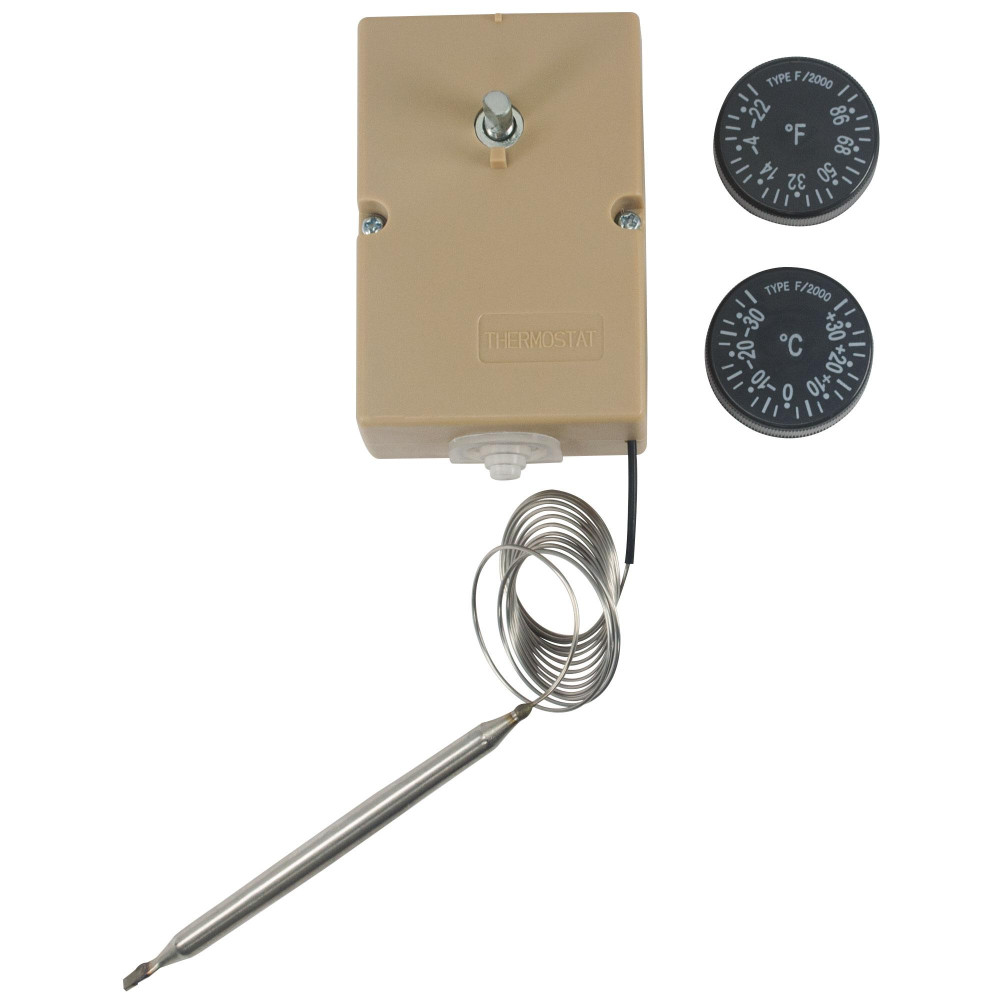 Appli Parts APRT-711 Refrigeration Mechanical Thermostat for Walk-in Coolers and Freezers, 2 Dial Reading Options, -31F to 95F and -35C to 35C, Capillary Tube length 59in with 4in Bulb 16A at 250V