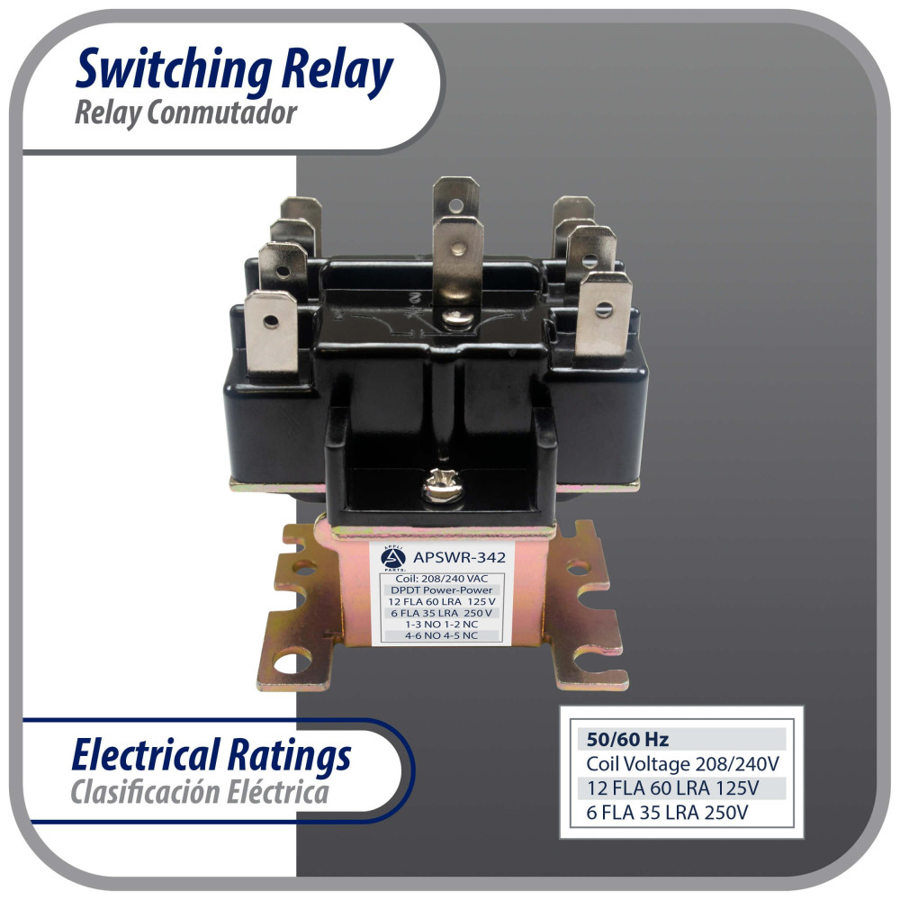 Appli Parts APSWR-342 90-342, 208-240 VAC Coil, General Purpose Switching Relay, DPDT, for HVAC applications and other general electrical installations, Replaces APSR-342