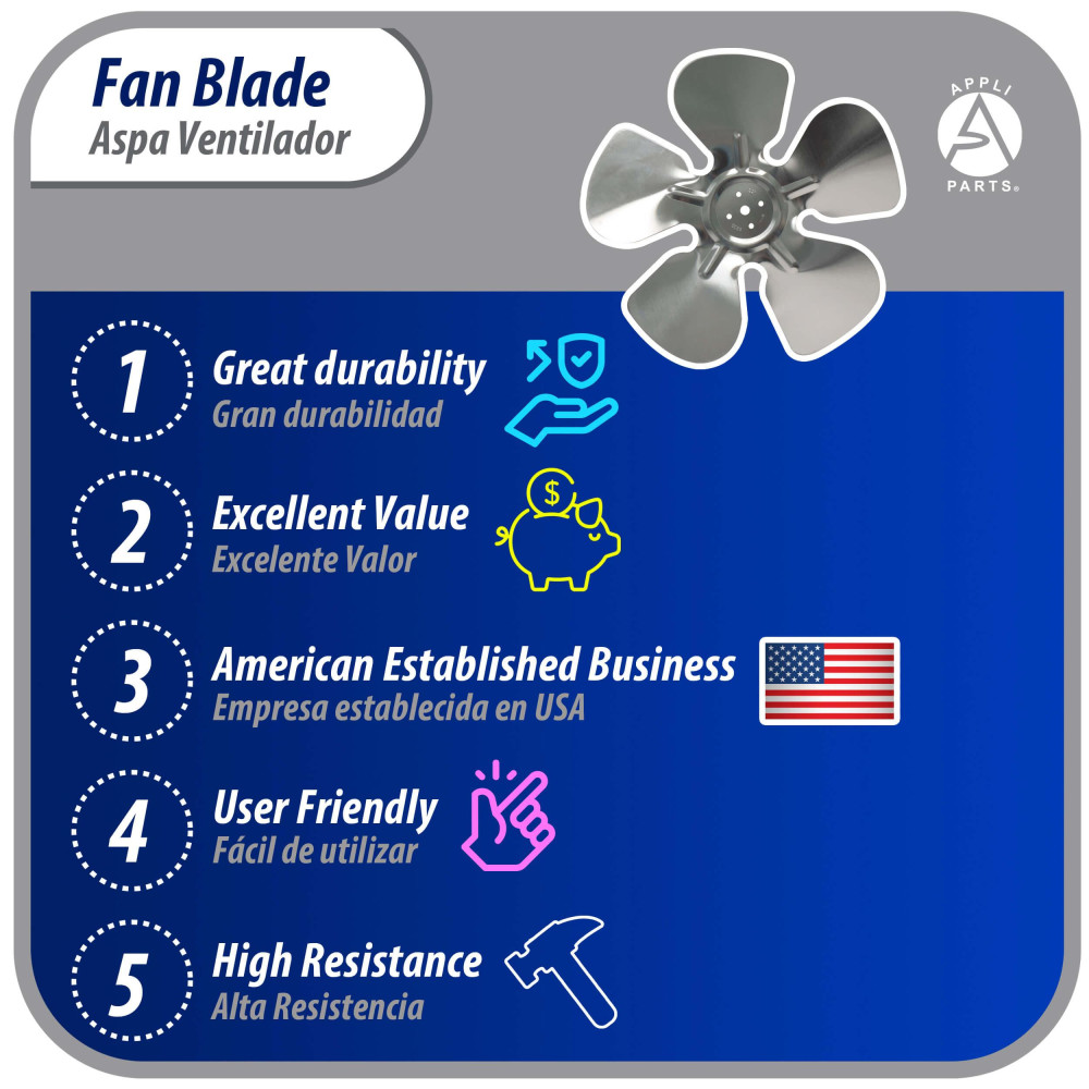 Appli Parts APFB-A10CCW Aluminum Fan Blade 10 in, 250 mm, CCW, 22 degrees, hubless 5 holes, 5 wings