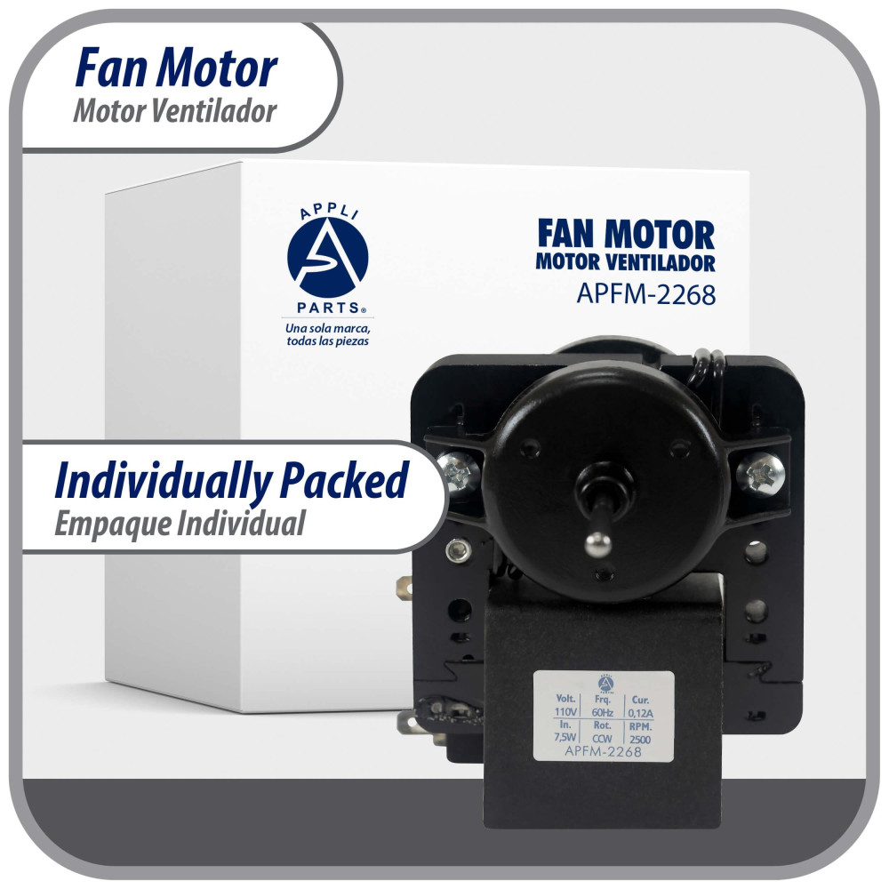 Appli Parts APFM-2268 Evaporator Fan Motor for refrigerators and freezers 110 V, 60 Hz, 0.12 A, 7.5 W, 2500 rpm, CCW, Shaft Length 1-1/8 in replaces 200D2940P001C, 200D2940P002, P009, WR01F02268