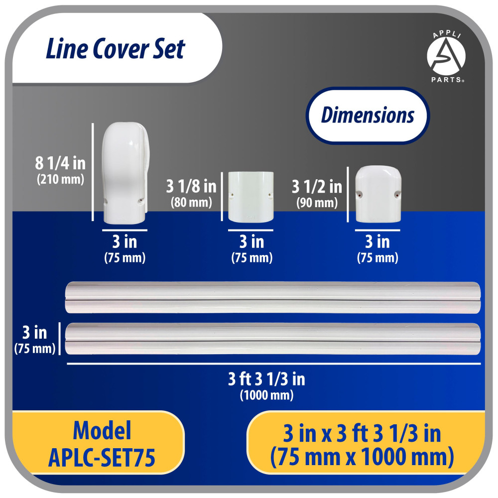 Appli Parts APLC-SET75 Line Cover Set 3in x 7.5 ft includes, 2 Straight, 1 Coupling, 1 Wall Cap Cover, 1 End Cap