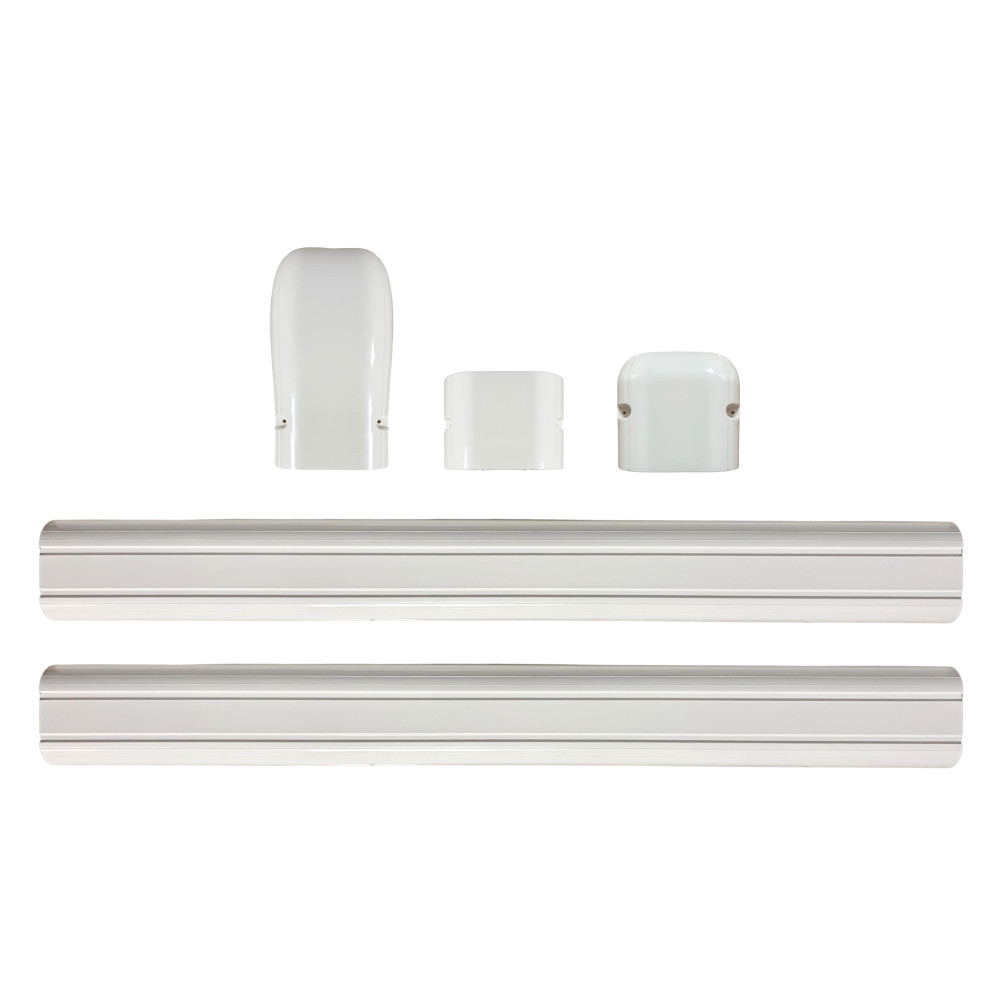 Quick and complete installation: 4 in x 7.48 ft line cover kit includes 2 straight ducts, 1 coupling, 1 end cap, 1 wall cover and screws for easy installation.