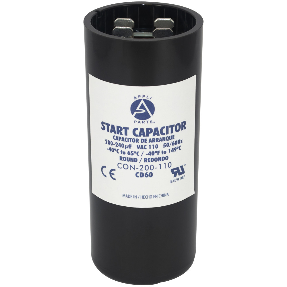 Appli Parts CON-200-110 Motor Start Capacitor 200-240 MFD uF, 110-125 VAC. Universal for Electric Motor Applications, 1.44 in Wide, 3.38 in Height
