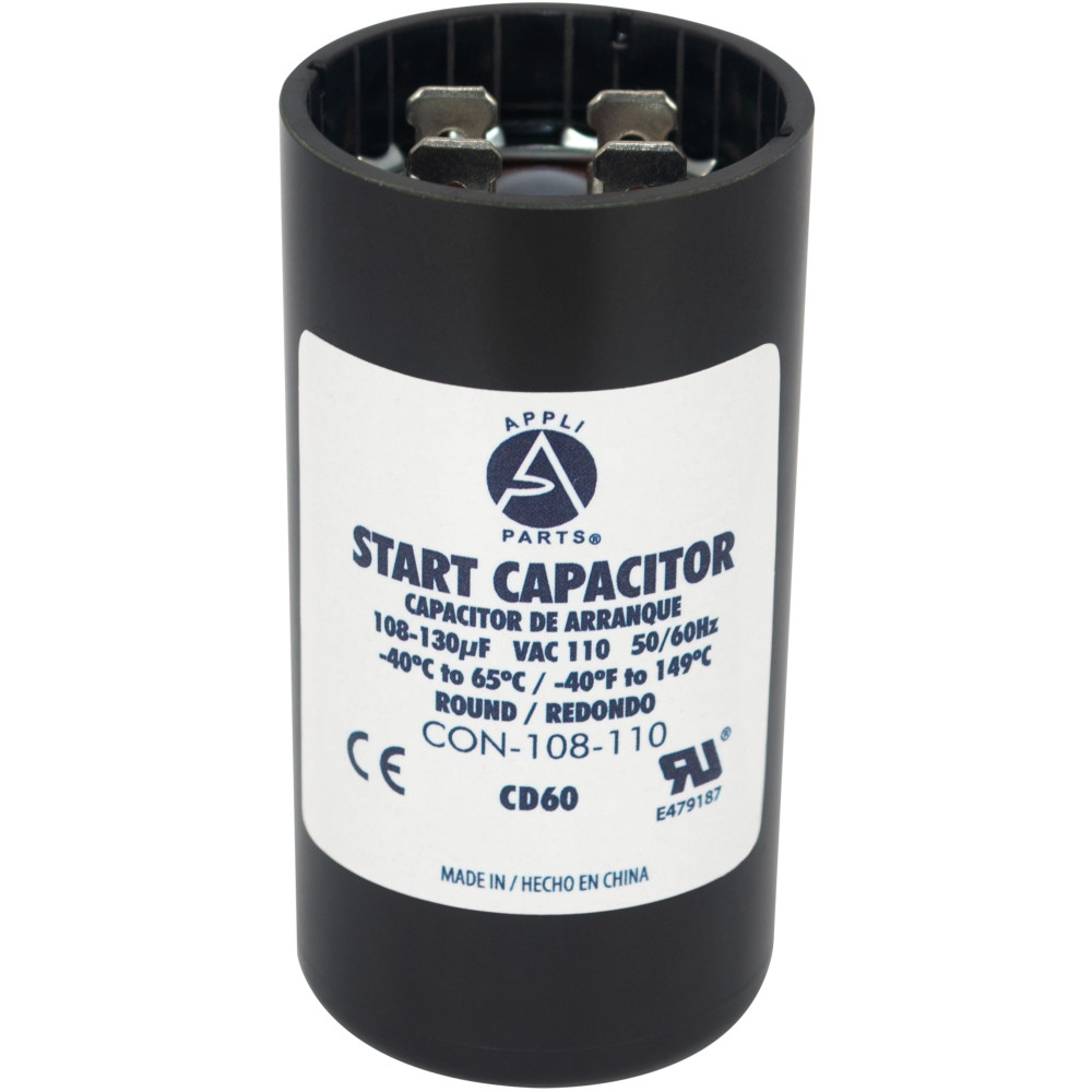 Appli Parts CON-108-110 Motor Start Capacitor 108-130 MFD uF, 110-125 VAC. Universal for Electric Motor Applications, 1.44 in Wide, 2.75 in Height