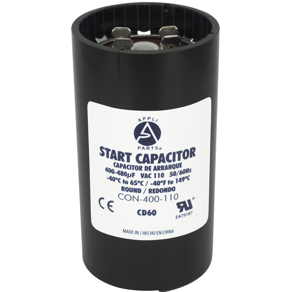 Appli Parts CON-400-110 Motor Start Capacitor 400-480 MFD uF, 110-125 VAC. Universal for Electric Motor Applications, 1.75 in Wide, 3.38 in Height