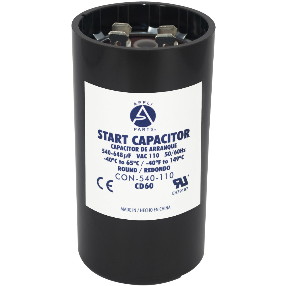 Appli Parts CON-540-110 Motor Start Capacitor 540-648 MFD uF, 110-125 VAC. Universal for Electric Motor Applications, 1.75 in Wide, 3.38 in Height