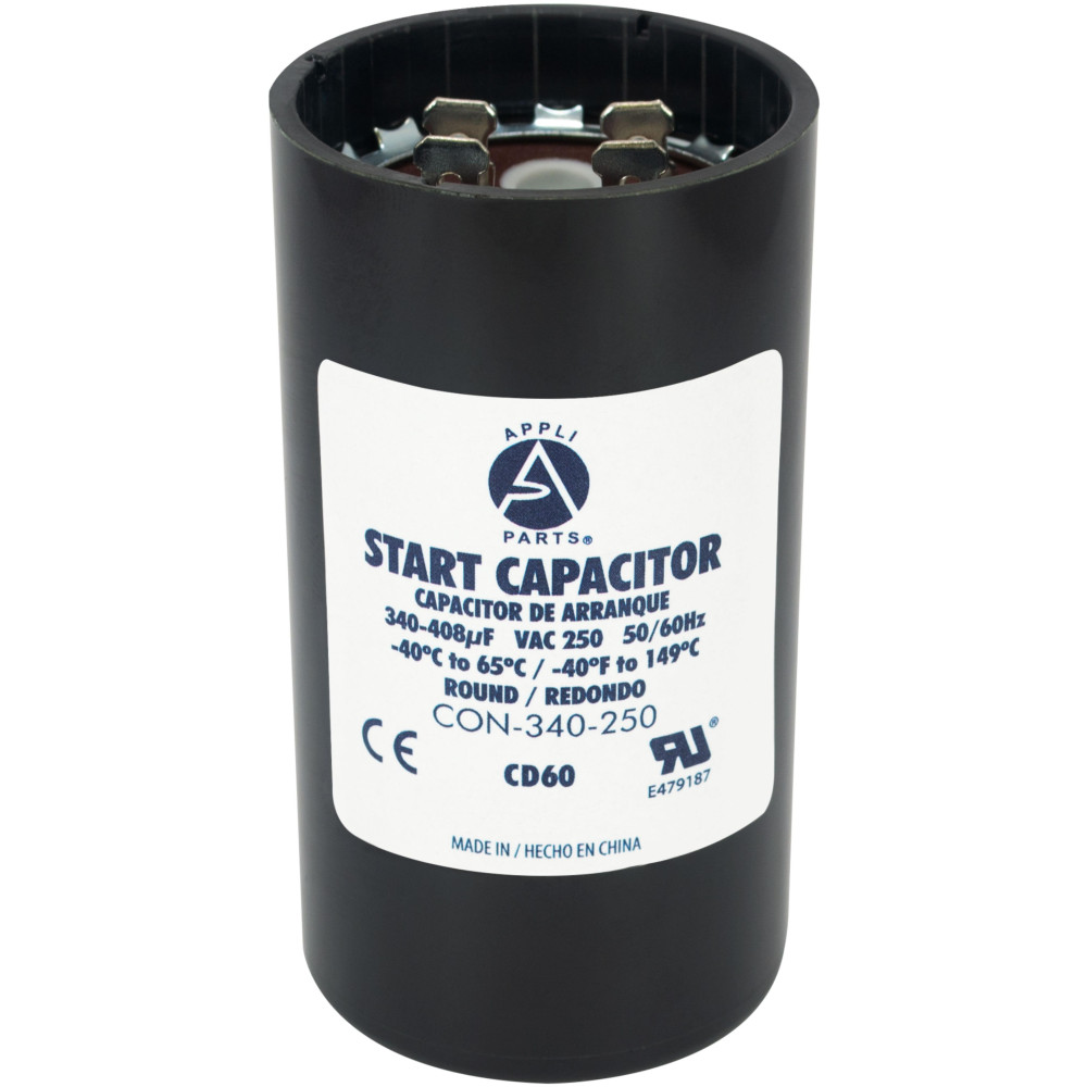 Appli Parts CON-340-250 Motor Start Capacitor 340-408 MFD uF, 250 VAC. Universal for Electric Motor Applications, 1.75 in Wide, 3.38 in Height