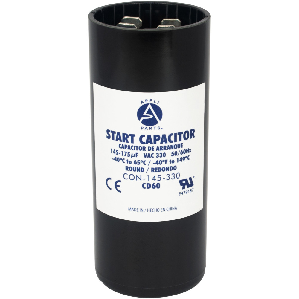 Appli Parts CON-145-330 Motor Start Capacitor 145-175 MFD uF, 330 VAC. Universal for Electric Motor Applications, 1.44 in Wide, 3.38 in Height