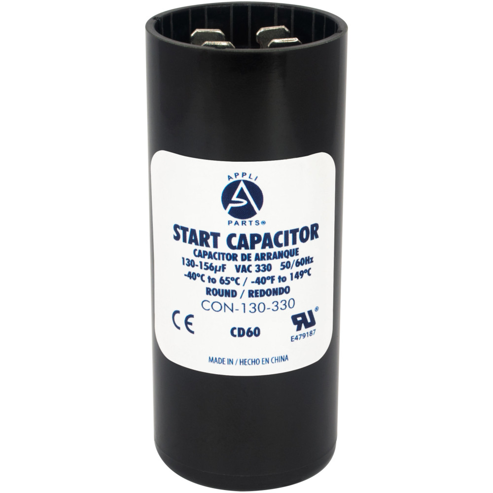 Appli Parts CON-130-330 Motor Start Capacitor 130-156 MFD uF, 330 VAC. Universal for Electric Motor Applications, 1.44 in Wide, 3.38 in Height