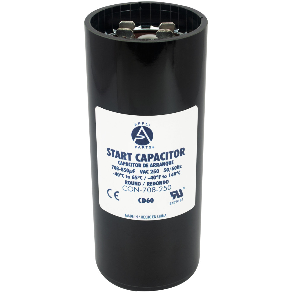 Appli Parts CON-708-250 Motor Start Capacitor 708-850 MFD uF, 250 VAC. Universal for Electric Motor Applications, 1.75 in Wide, 4.38 in Height