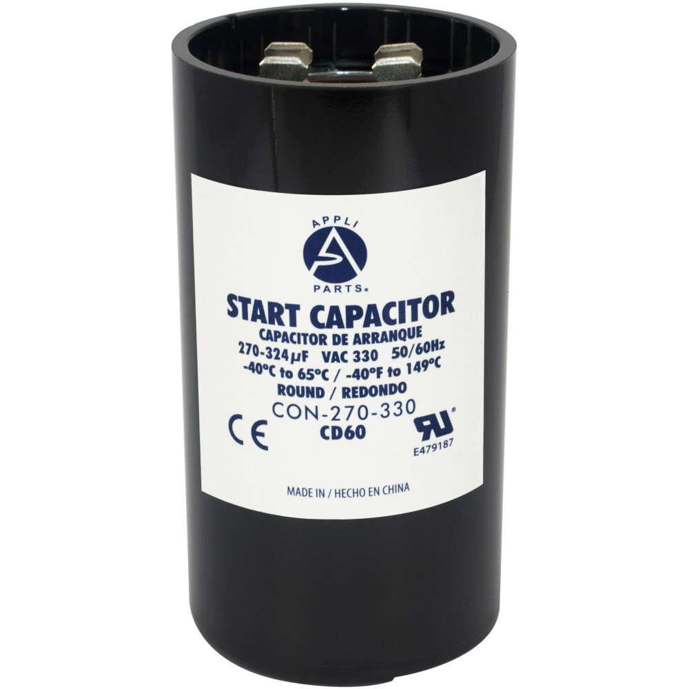 Appli Parts CON-270-330 Motor Start Capacitor 270-324 MFD uF, 330 VAC. Universal for Electric Motor Applications, 1.75 in Wide, 3.38 in Height