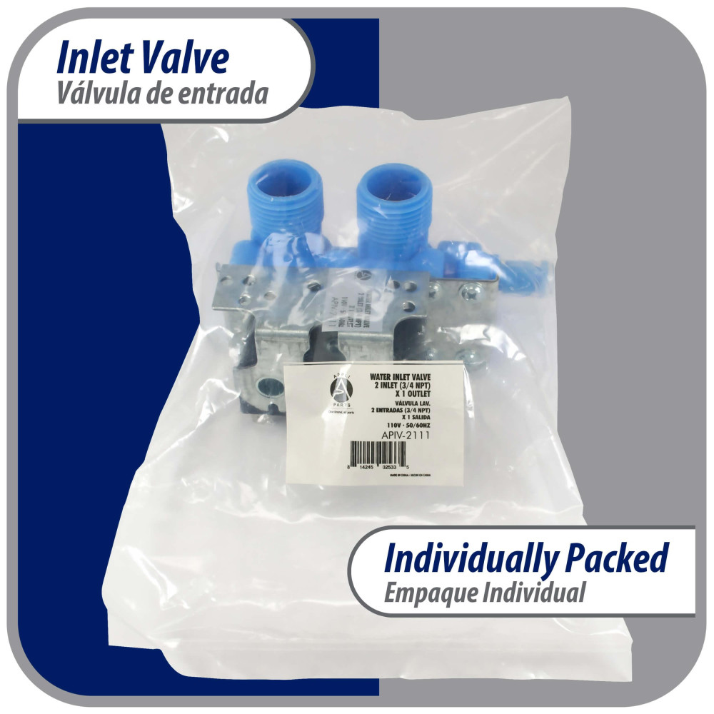 Appli Parts WH13X81 inlet water valve for washing machine 2 x 3/4 NPT Inlet 1 x 1/2 Outlet 110-120V 50/60Hz Universal replacement for General Electric and other brands APIV-2111