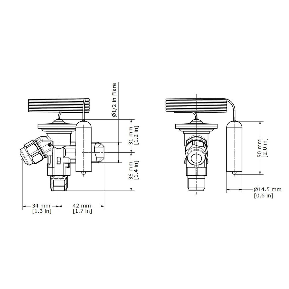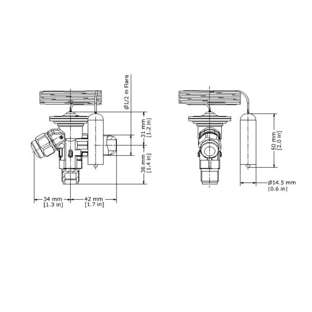 The 59 inch capillary tube connects the sensing bulb to the valve, enabling responsive superheat control.