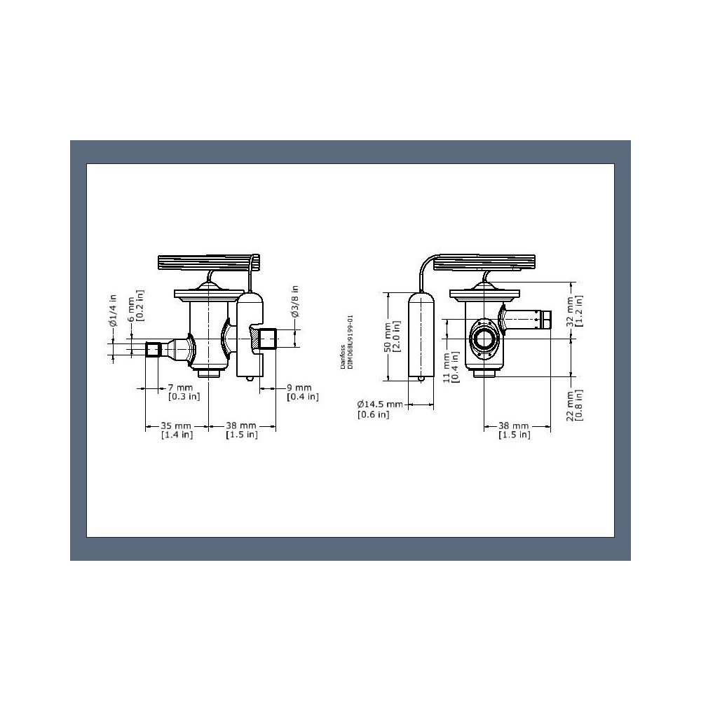 Danfoss 068U3701 0.18 TR Expansion Valve Stainless Steel Body, TUB, R-290, 1/4x3/8 in, Solder, ODF, Internally equalized, Single-flow with orifice 00, -40 to 50 F