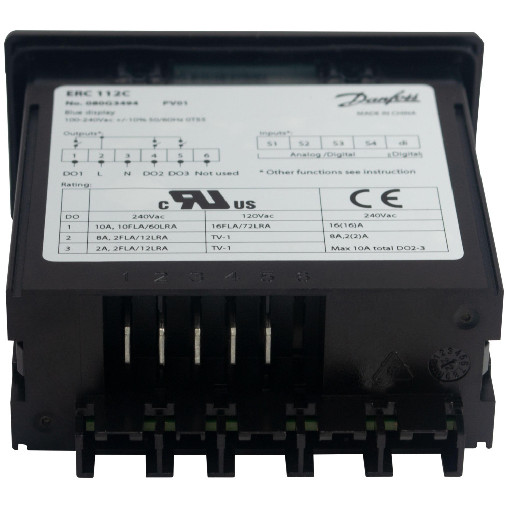 Danfoss ERC 112C Refrigeration Controller for Glass Door Merchandisers, Commercial Refrigerators and Freezers, 110/220 V, 4 Relay Outputs, 2 Temperature Sensor Inputs, Sensors Not Included