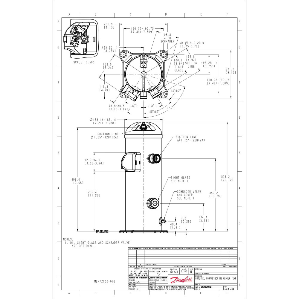 Danfoss MLZ076T2LQ9A 10 HP MBP Refrigeration Scroll Compressor 208-230/3/60 (V/Ph/Hz) R404, R407, R507, R452, R134, R513, R22, R448, R449 Rotolock Valves V02, V05, POE Oil 121L8835 Replaces 120U8055
