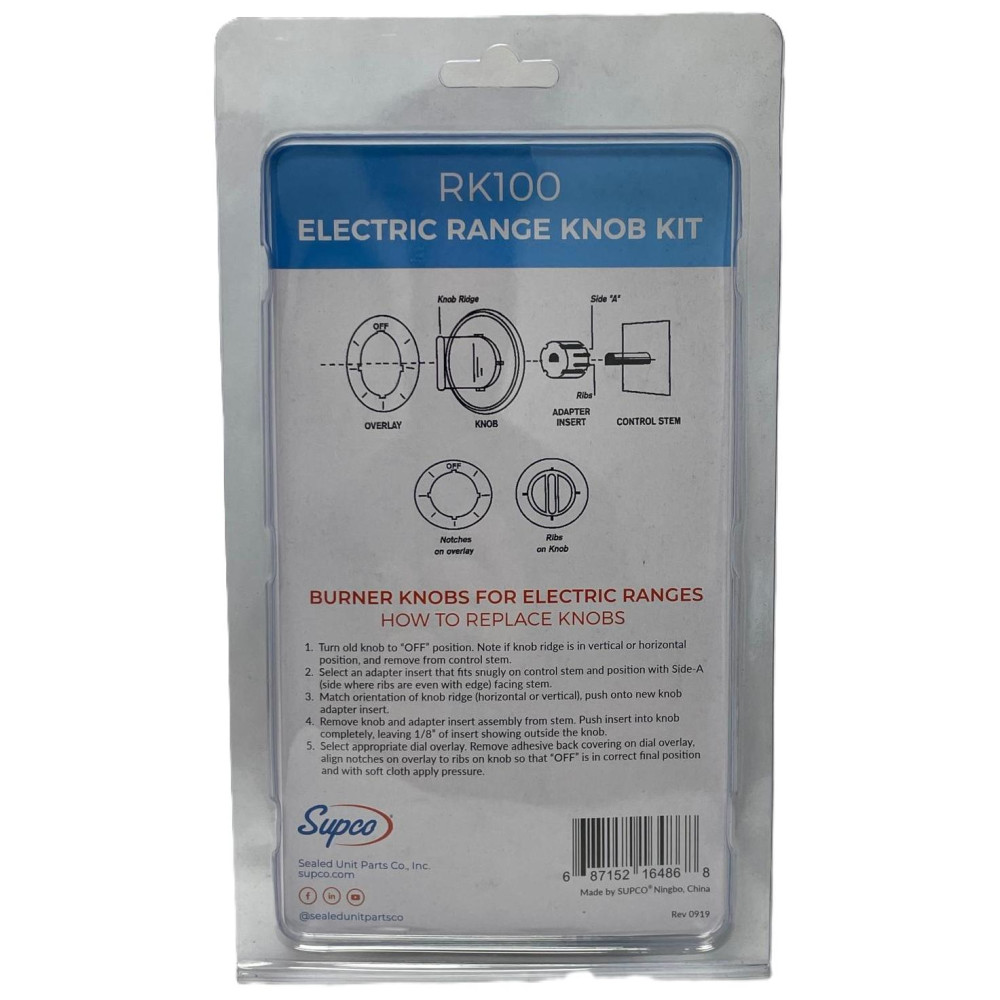 Supco RK100 Universal Knob Kit for Electric Range, 4 Black Knobs with adaptors