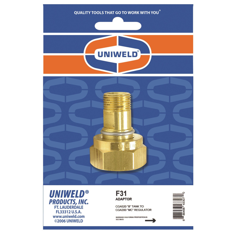 Uniweld F31 Cylinder CGA520 B to Regulator GCA200 MC Adaptor 43307