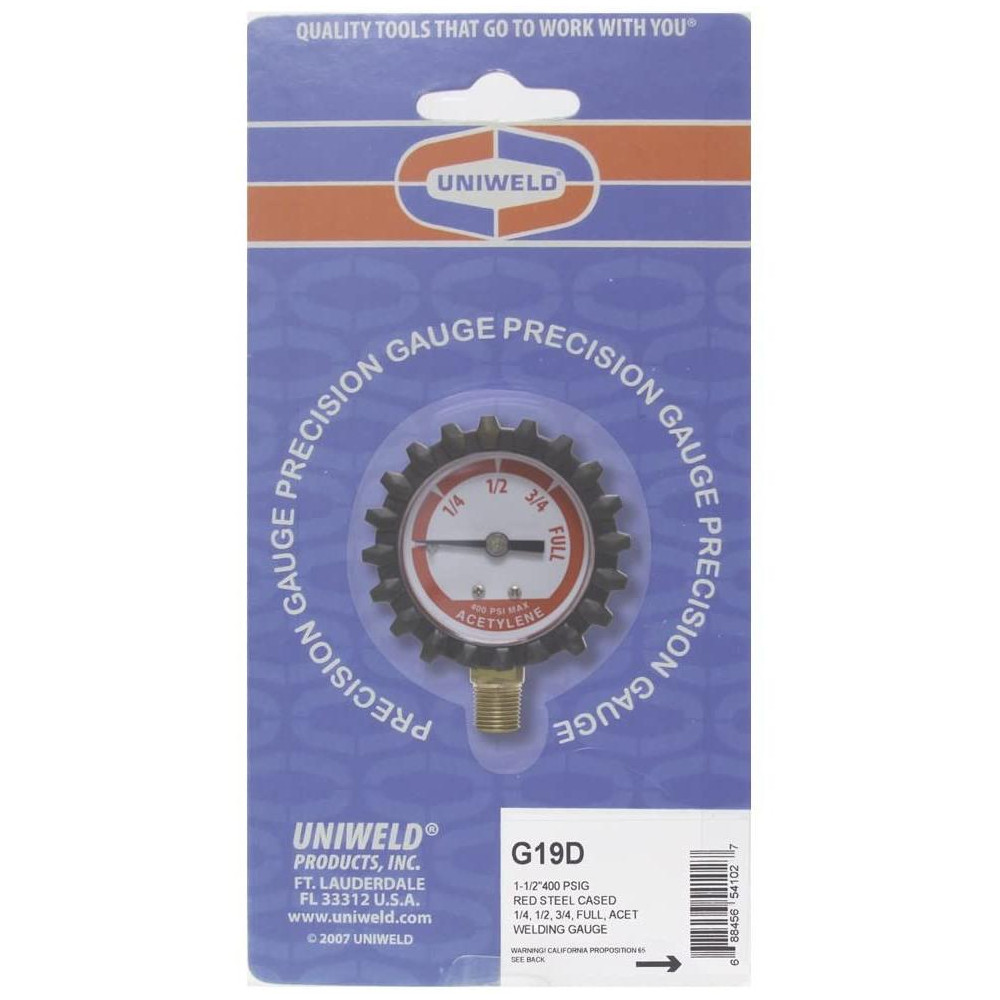 Uniweld G19D Acetylene Replacement Contents Gauge1-1/2-Inch 400 PSI with Protective Rubber Boots
